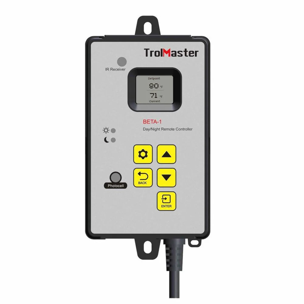 The Beta-1 will instruct the AC to run at the temperature settings the user has chosen for the day and night. Based on the condition of the integrated photocell, the Beta-1 determines the appropriate temperature to run the air conditioner at. Additionally, the Beta-1 has a remote temperature sensor that can be placed at the plant canopy thanks to a 16-foot cable.